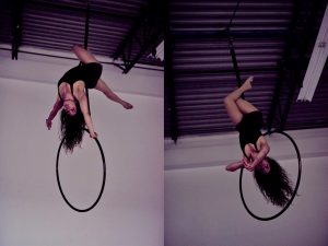 This workshop will explore trapeze and aerial hoop choreography with a focus on music. As a musician in addition to an aerialist, Eliana has an innate awareness of how to use music to define movement. We will learn to analyze different components of music and will work with one or more pieces of music that have complex time signatures. We will then learn a small piece of choreography that uses music as its main source of movement. Finally, students will have the opportunity to experiment with their own choreography or ambient performance by using music as inspiration for their movement.